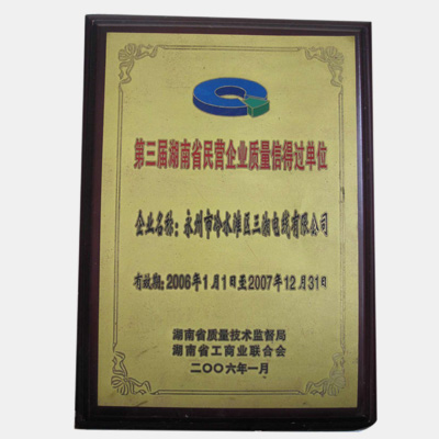 第三界湖南省民營(yíng)企業(yè)質(zhì)量信得過單位